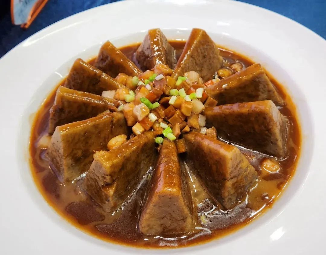 前童有“三宝”——老豆腐、香干、空心豆腐。老豆腐色泽洁白如玉、口感细腻绵滑;香干入口既香又甜,嚼劲十足;空心豆腐脆而不碎,让人久吃不厌。