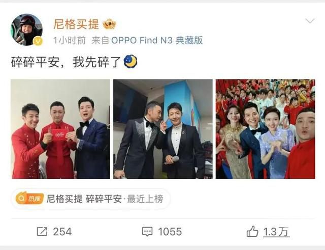 今早6点多,尼格买提发了条微博:“碎碎平安,我先碎了。”还晒出了他和撒贝宁的合照。