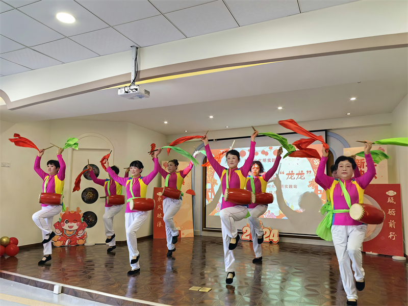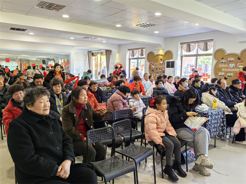 在慈溪市浒山街道东海社区,“迎新纳福 其乐 '龙龙' 主题联欢会准时开场,来自浒山街道中心幼儿园的孩子们精心准备的舞蹈串烧、情景剧、手势舞、啦啦操等节目轮番登台,赢得台下爷爷奶奶们阵阵喝彩。大人们也不甘示弱,纷纷亮出自己的精彩绝活儿,越剧、广场舞、蒙古舞、八段锦、诗朗诵……一个个节目精彩纷呈,“一老一小”欢聚一堂,过年的氛围喜悦而又热烈。