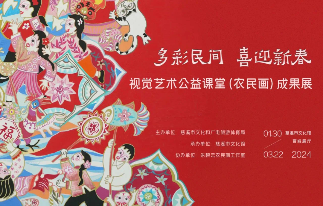 活动内容:本次展览展出该公益课堂师生成果60余件,充分展示了慈溪农民画造型夸张、色彩明快、构图饱满、装饰性强的特点。