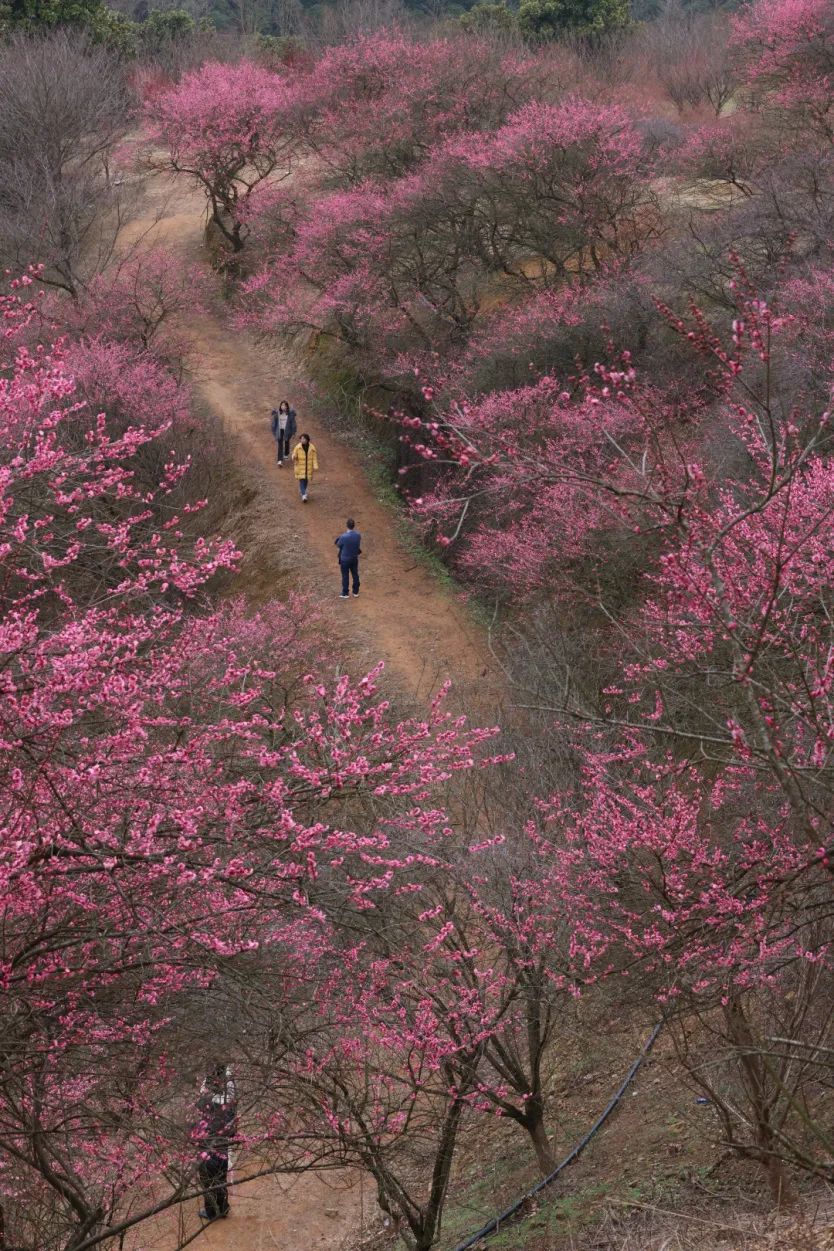 今年春节期间,梅花谷的梅花进入盛花期,游客又可以欣赏到一派宛如云霞的梅海。