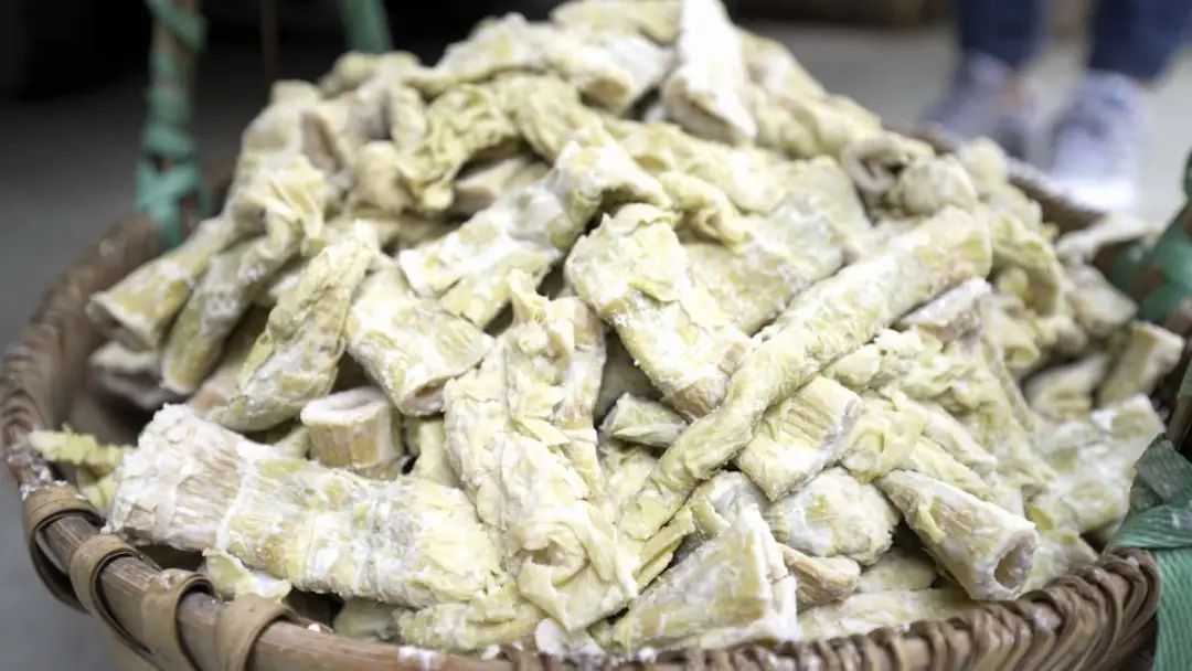 竹笋是冬日里让奉化人牵肠挂肚的美味。有一种竹笋煮熟后晒干,其形如羊尾,称“羊尾笋干”,又脆又嫩,鲜美无比。笋干清香扑鼻,煮汤或烧肉吃都可以。将雪菜与竹笋共同制成干菜笋,笋的味道更是妙不可言。