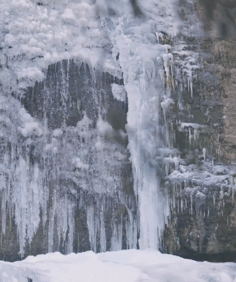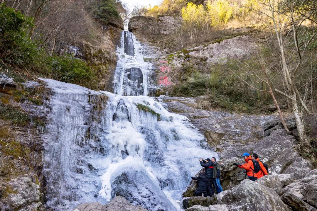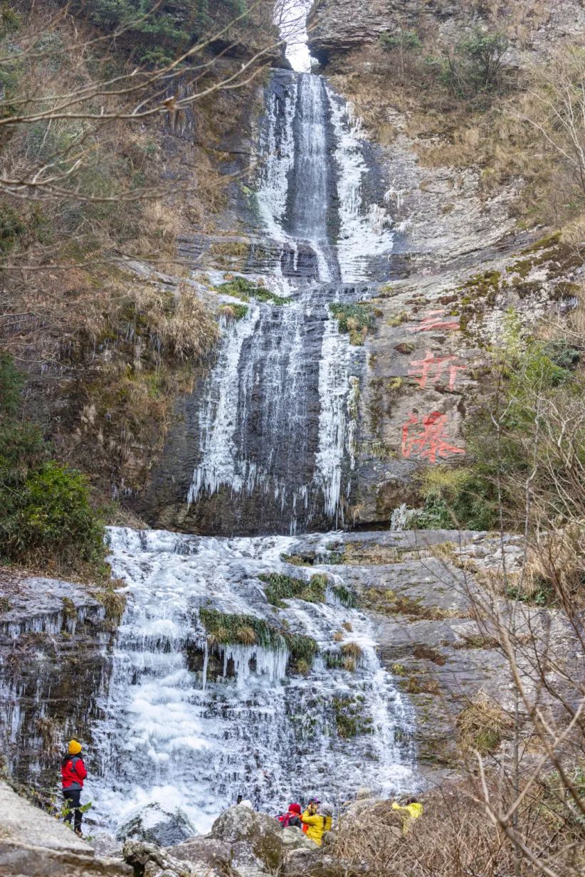 奉化里村的村外古道边有一个著名的三折瀑。平时,这里总是飞流直下,一瀑三叠,喷珠溅玉,十分好看。而每当严寒时节,这里就会出现壮观的冰瀑景观。