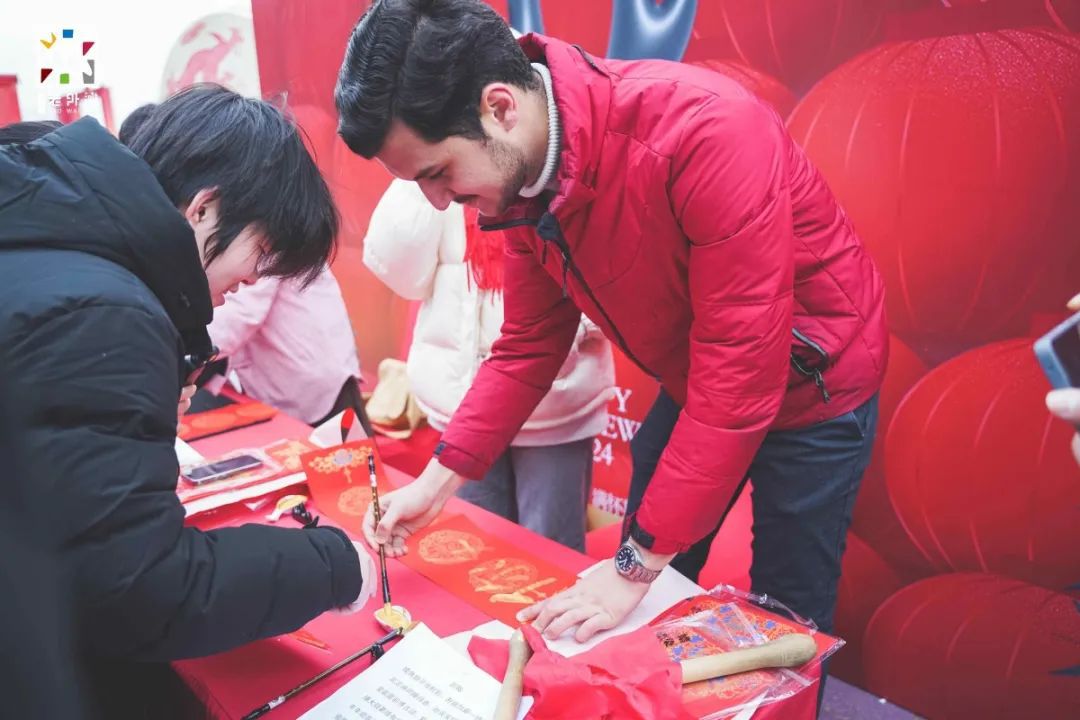 外国游客正在写春联。