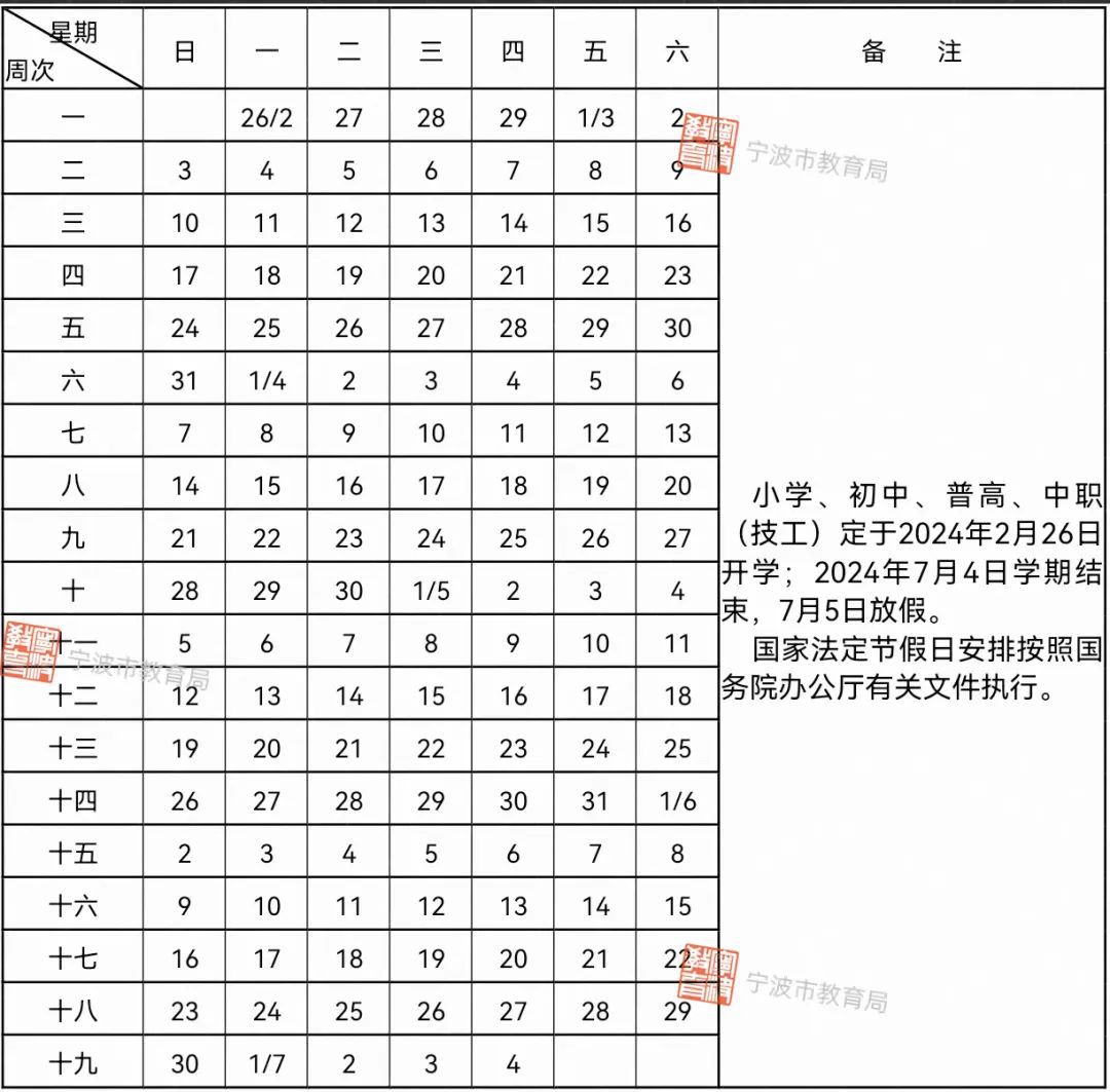新学期什么时候开学?什么时候放暑假?宁波市中小学2023-2024学年第二学期校历来了!快收好这份开学指南,迎接新学期吧。