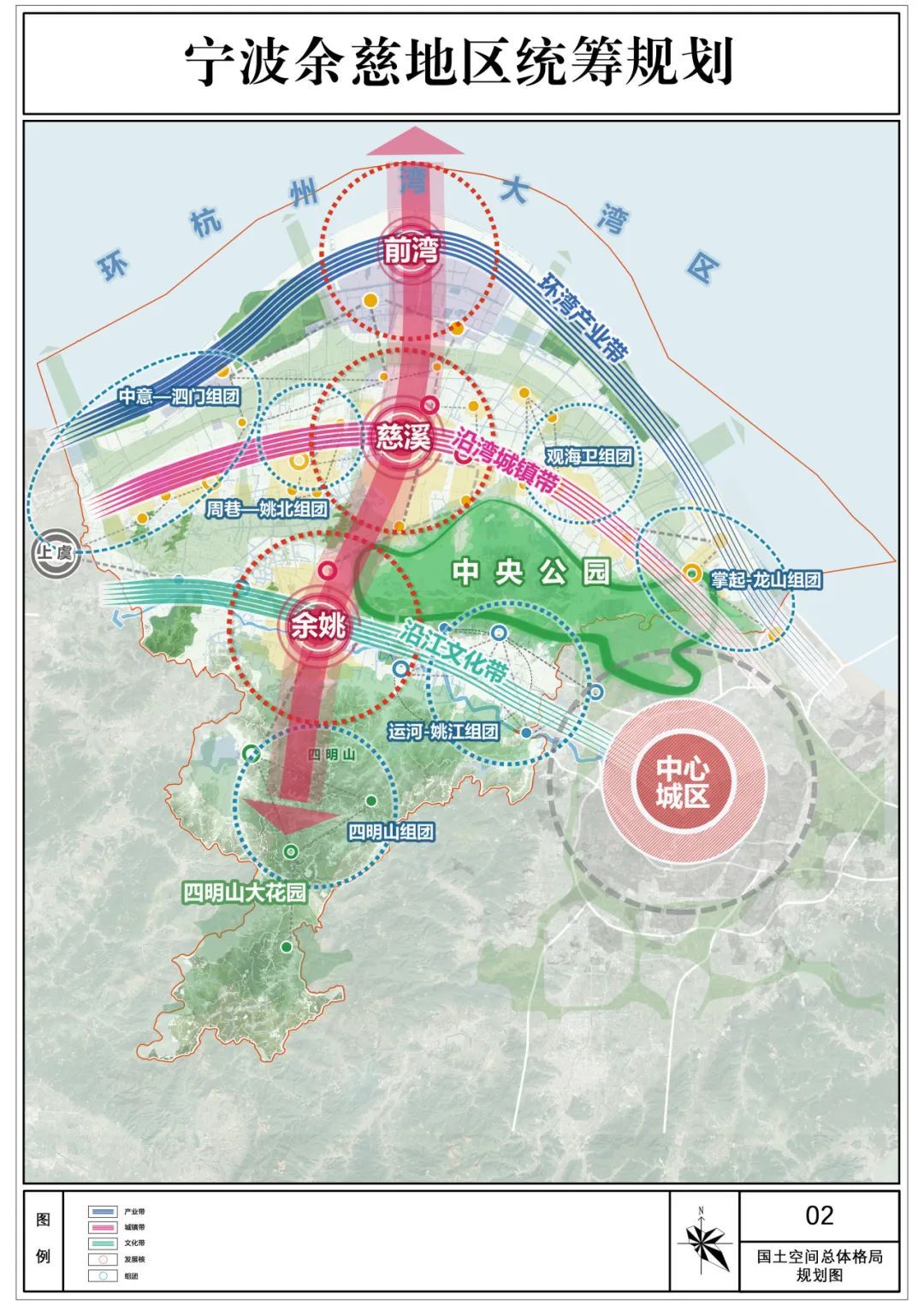 以翠屏山中央公园为纽带,链接余慈城区和中心城区,形成城市向心、产业滨海、休闲傍山的现代化滨海大都市北翼城区格局。以余姚、慈溪、前湾新区共同构成宁波的智造中心、文化经济副中心和区域合作示范区。