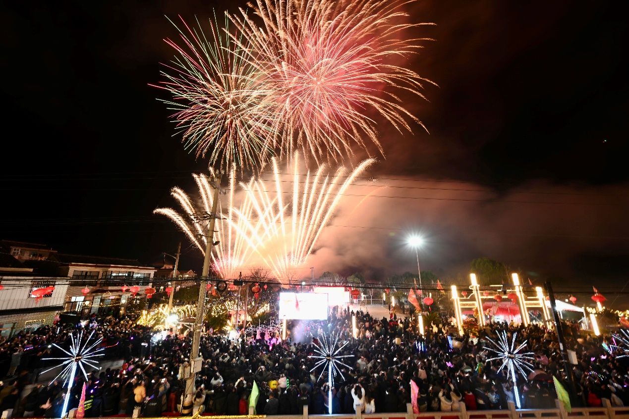 当晚8点18分,随着西岙行大龙省级非遗文化传承人陈万珍宣布“行大龙”开始,烟花绽放,鼓乐齐鸣,这个有着“一悠岁月回西洲,千秋灵气出名儒”的传统古村落瞬间沸腾。