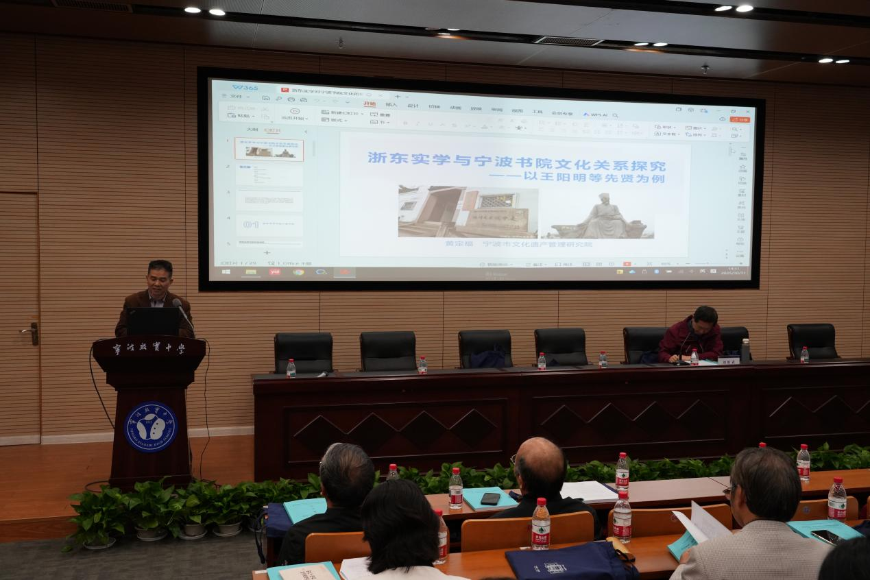 在论文点评环节,宁波大学教授、宁波文化研究会张如安会长表示:“我们今年的核心主题就是实学。既有对浙东实学历史源流的梳理,也要挖掘浙东实学的内涵,如何在当代人文经济中去运用、去发扬光大。我们以王阳明思想为核心,结合黄宗羲、朱舜水、张苍水等历史名人,利用他们的思想资源、遗留下来的实物资源等等,为宁波城市建设去服务。”