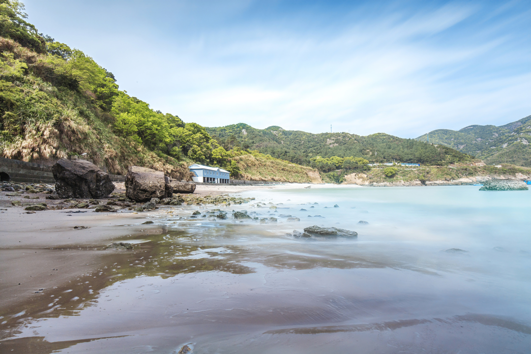 公路另一端的大沙沙滩,地处鹤浦镇东南部的大沙村。这个兼具浙江省3A级景区村庄与宁波市首批乡村旅游共同富裕示范村双重身份的村落,三面被青山环抱,一面临着壮阔的猫头洋,月牙形天然沙场、蜿蜒登山步道、古朴的明烽火台等景观散落其间。