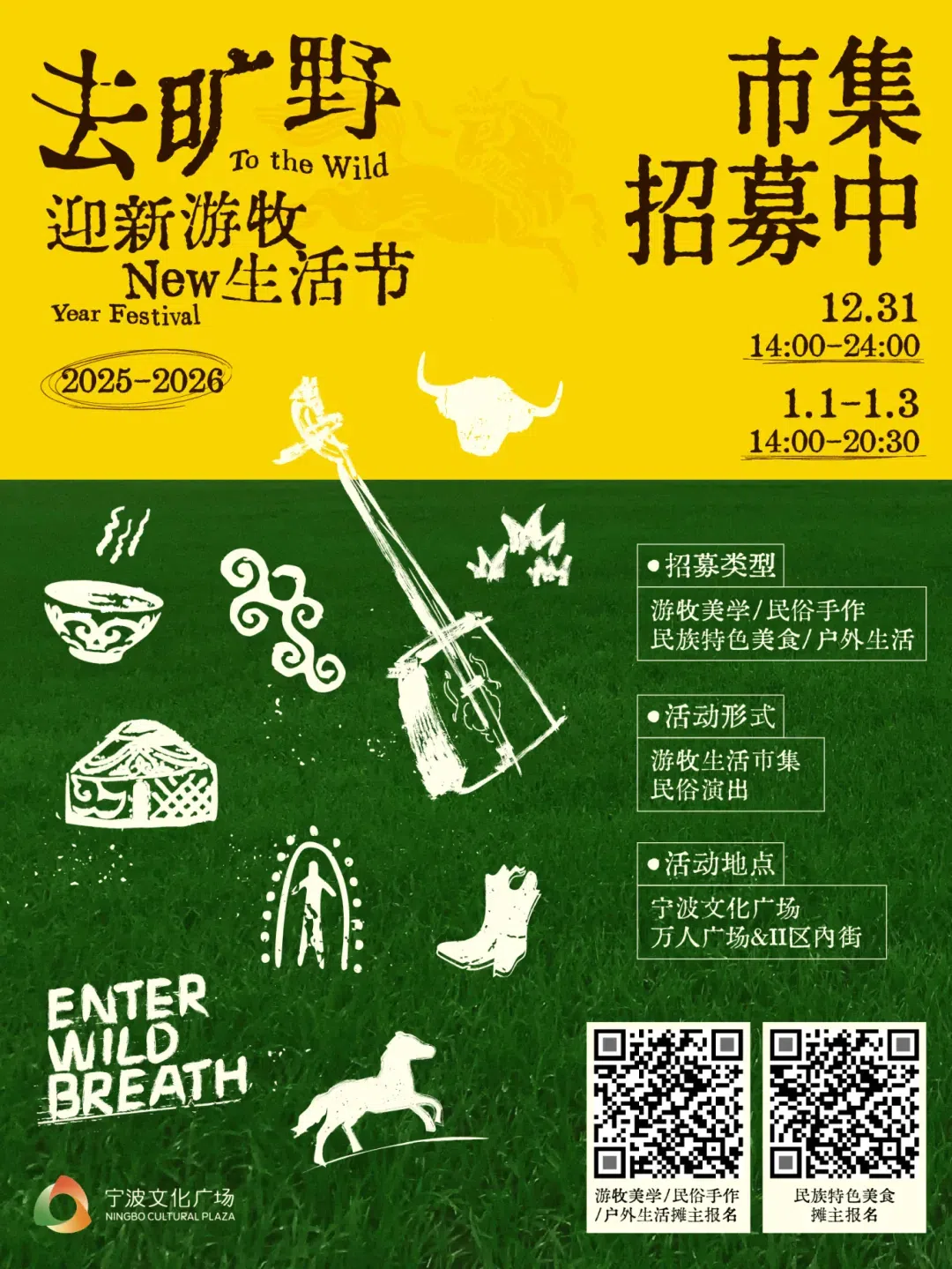 以游牧文化为核心,设置游牧市集、游牧工作坊、民族演艺等板块,穿插“马”等新年元素,传递游牧文化的热血与力量,全方位打造一场兼具文化质感与体验趣味的草原风迎新派对。