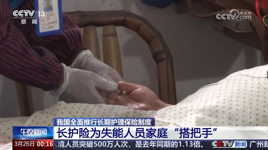 3月25日、26日,央视《晚间新闻》《新闻直播间》《午夜新闻》栏目播出《【我国全面推行长期护理保险制度】长护险为失能人员家庭“搭把手”》,其中(视频20秒处)报道了浙江去年已实现长护险制度全覆盖,参保率达93%,累计为21.2万失能人员减负40亿元。宁波市针对山区、海岛等偏远地区设立基层服务点,招募培训农村剩余劳动力做护理员。除了为失能人员提供42项生活护理,宁波市还为失能人员提供10项居家医疗护理。