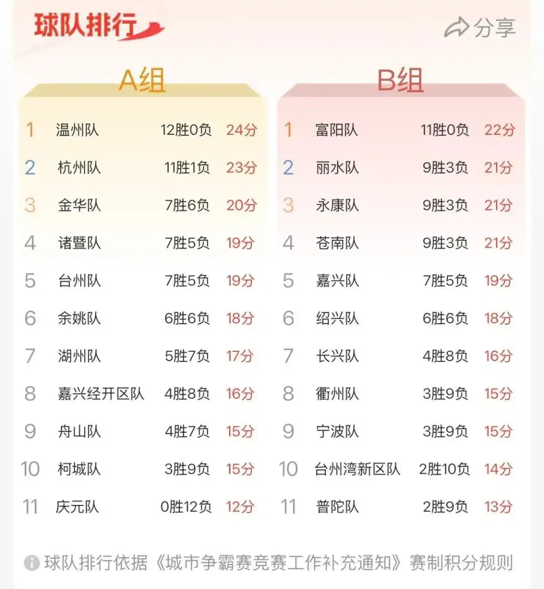 浙BA积分榜