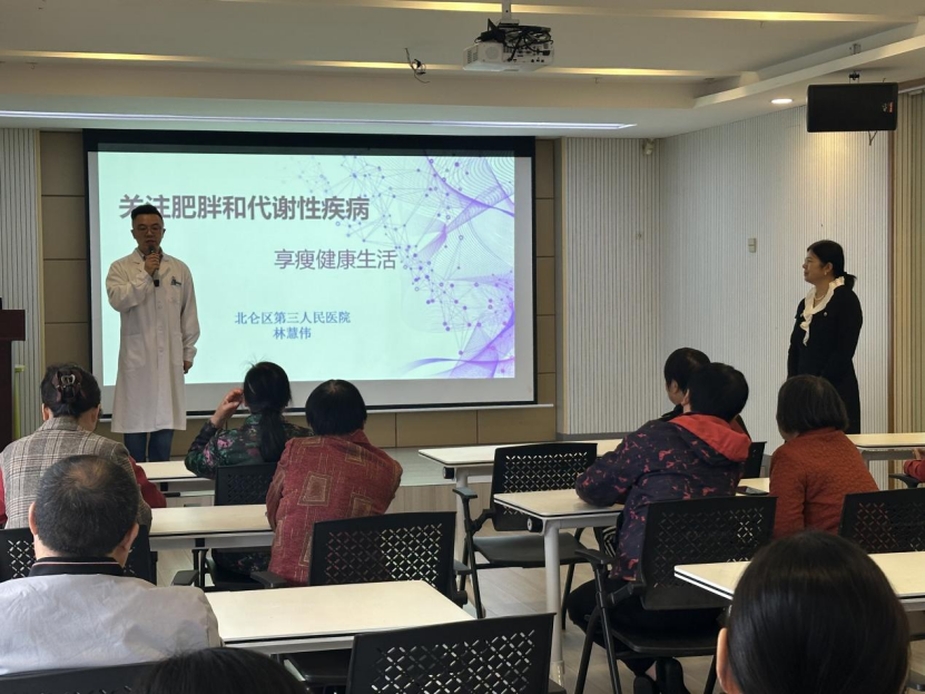 “代谢性疾病其实离我们很近,长期久坐、饮食重油重盐、熬夜等习惯都可能诱发,关键要做到‘早预防、早干预’!”11月13日下午,渡头董工业社区党群服务中心联合社区工会、社会组织服务中心、新时代文明实践站、妇联、关工委邀请北仑区第三人民医院的林慧伟医生,为辖区企业职工和周边村民开展“全民关注代谢性疾病,享瘦健康生活”主题讲座,用通俗的语言传递专业健康知识。