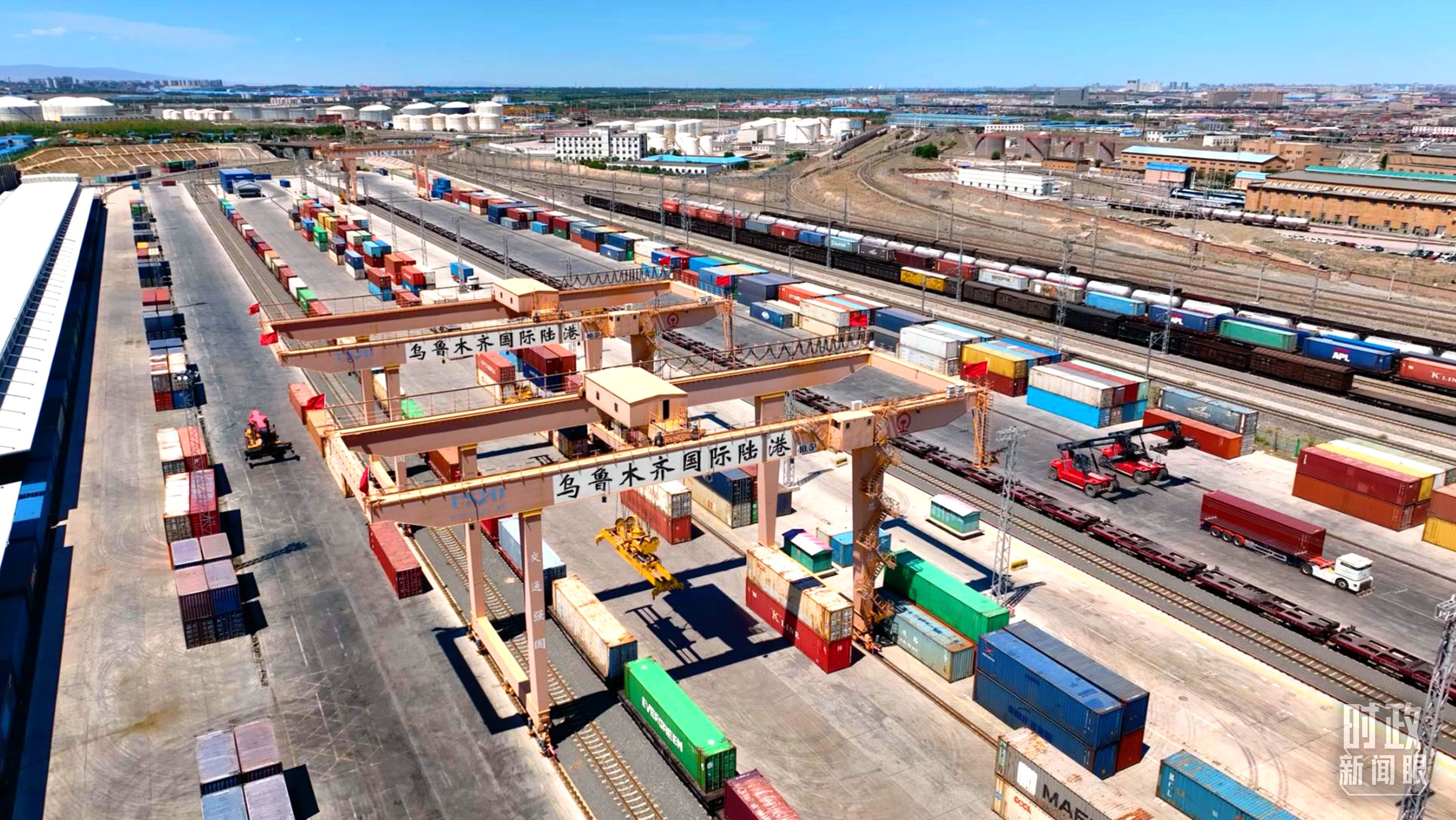 △截至2022年6月,乌鲁木齐国际陆港区累计开行中欧班列5900余列。(总台记者冯超拍摄)