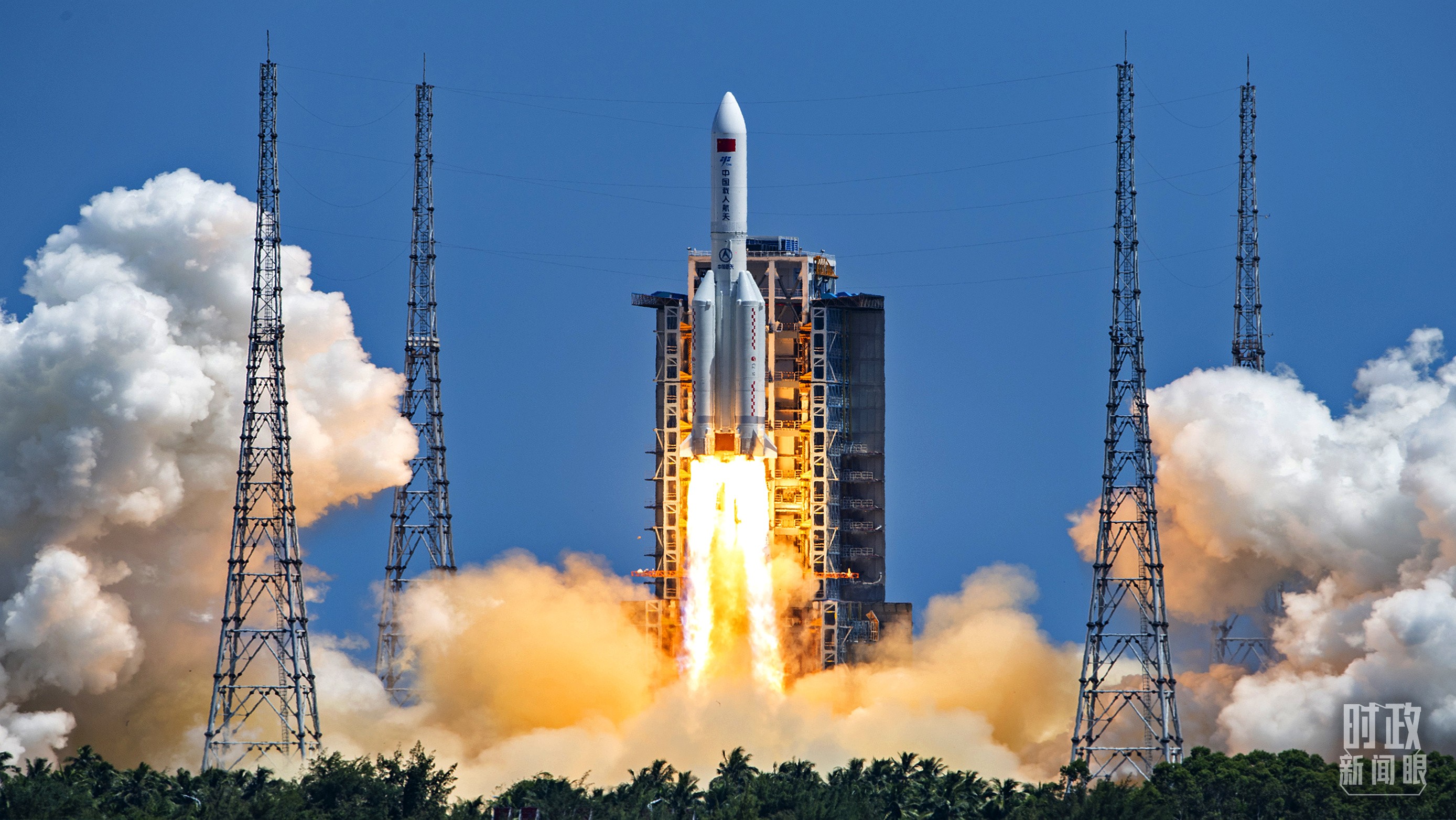 △2022年7月24日14时22分,搭载问天实验舱的长征五号B遥三运载火箭,在海南文昌航天发射场发射升空。(图/视觉中国)