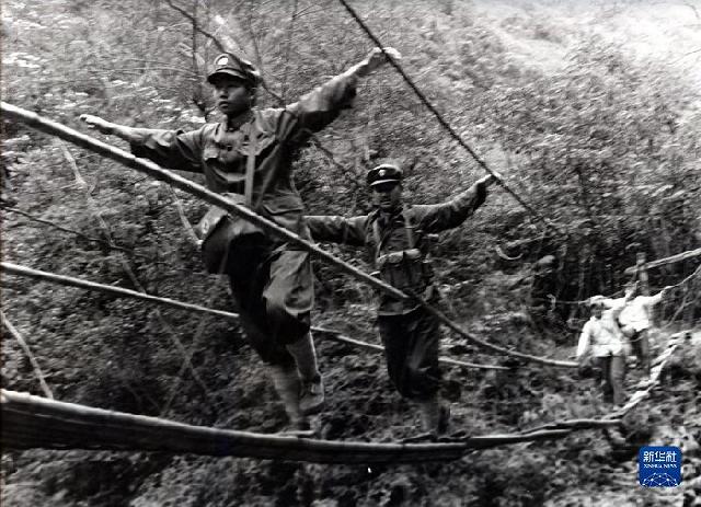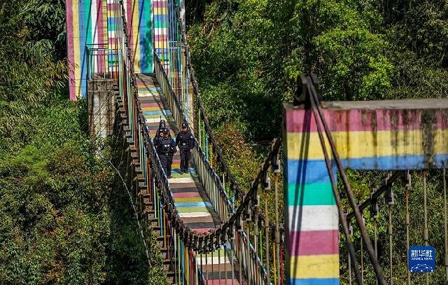当年独龙江边防官兵巡逻途中经过吊桥。(资料照片,怒江边境管理支队 供图)