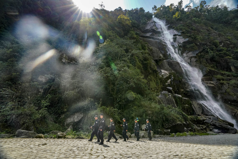 独龙江乡边境派出所民警在边境巡查。(2019年4月20日 新华社记者 江文耀 摄)
