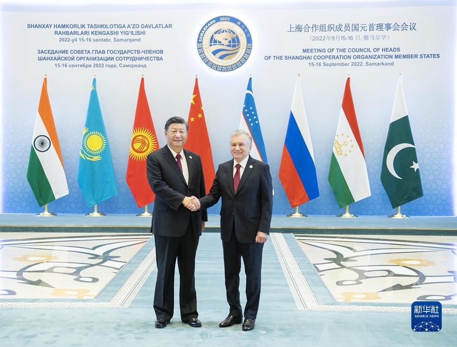 当地时间9月16日,国家主席习近平在撒马尔罕国际会议中心出席上海合作组织成员国元首理事会第二十二次会议小范围会谈。