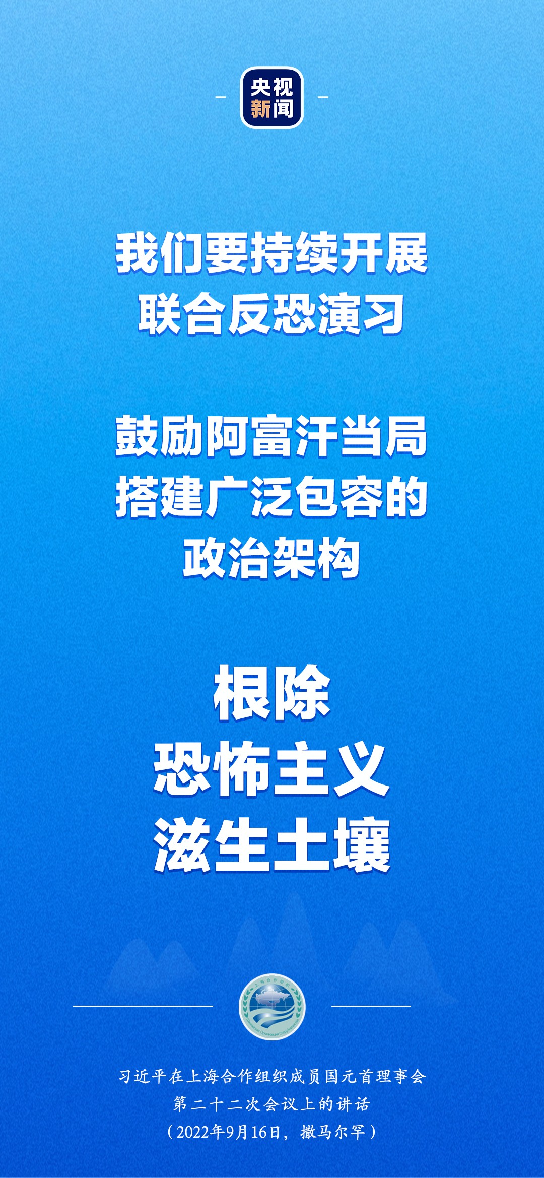 国家主席习近平16日在撒马尔罕出席上海合作组织成员国元首理事会第二十二次会议并发表重要讲话,强调秉持“上海精神”,加强团结合作,推动构建更加紧密的上海合作组织命运共同体。