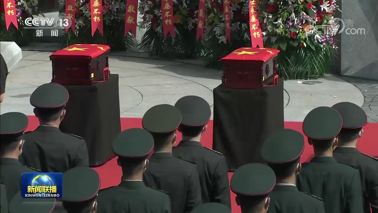 第九批在韩中国人民志愿军烈士遗骸安葬仪式今天(9月17日)在沈阳抗美援朝烈士陵园举行,88位志愿军英烈在祖国安息。