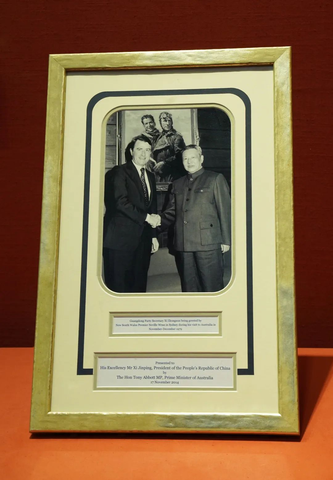 2014年11月,时任澳大利亚总理赠习近平的习仲勋访澳照片。(摄影/胡杨)