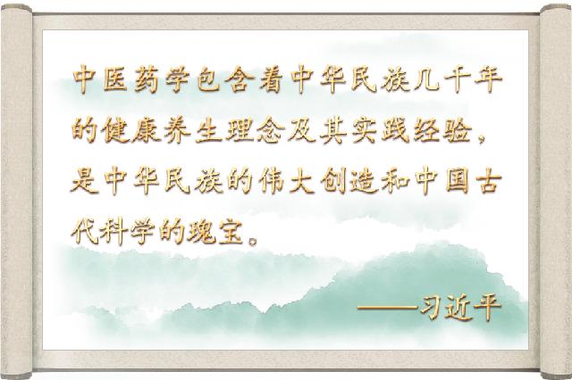 习近平总书记强调,中医药学包含着中华民族几千年的健康养生理念及其实践经验,是中华民族的伟大创造和中国古代科学的瑰宝。要做好守正创新、传承发展工作,积极推进中医药科研和创新,注重用现代科学解读中医药学原理,推动传统中医药和现代科学相结合、相促进,推动中西医药相互补充、协调发展,为人民群众提供更加优质的健康服务。