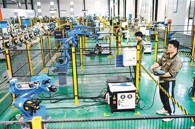△江西赣州一家智能装备制造企业内,几名青年技工在加紧调试出口的工业机器人订单产品。