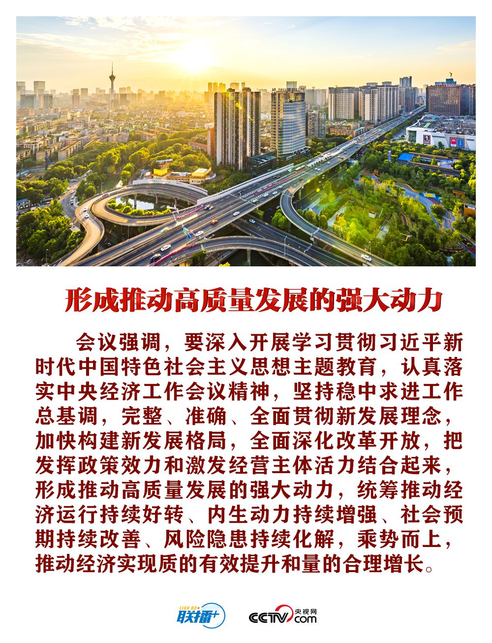 会议认为,今年以来,在以习近平同志为核心的党中央坚强领导下,我国经济社会全面恢复常态化运行,经济增长好于预期,市场需求逐步恢复,经济发展呈现回升向好态势,经济运行实现良好开局。同时,会议指出,当前我国经济运行好转主要是恢复性的,经济转型升级面临新的阻力,推动高质量发展仍需要克服不少困难挑战。