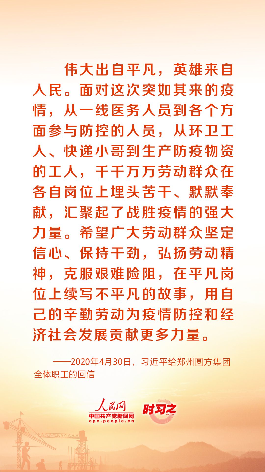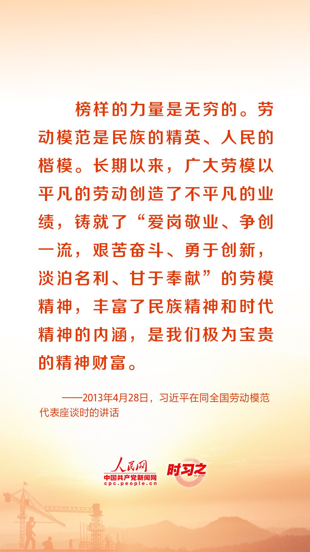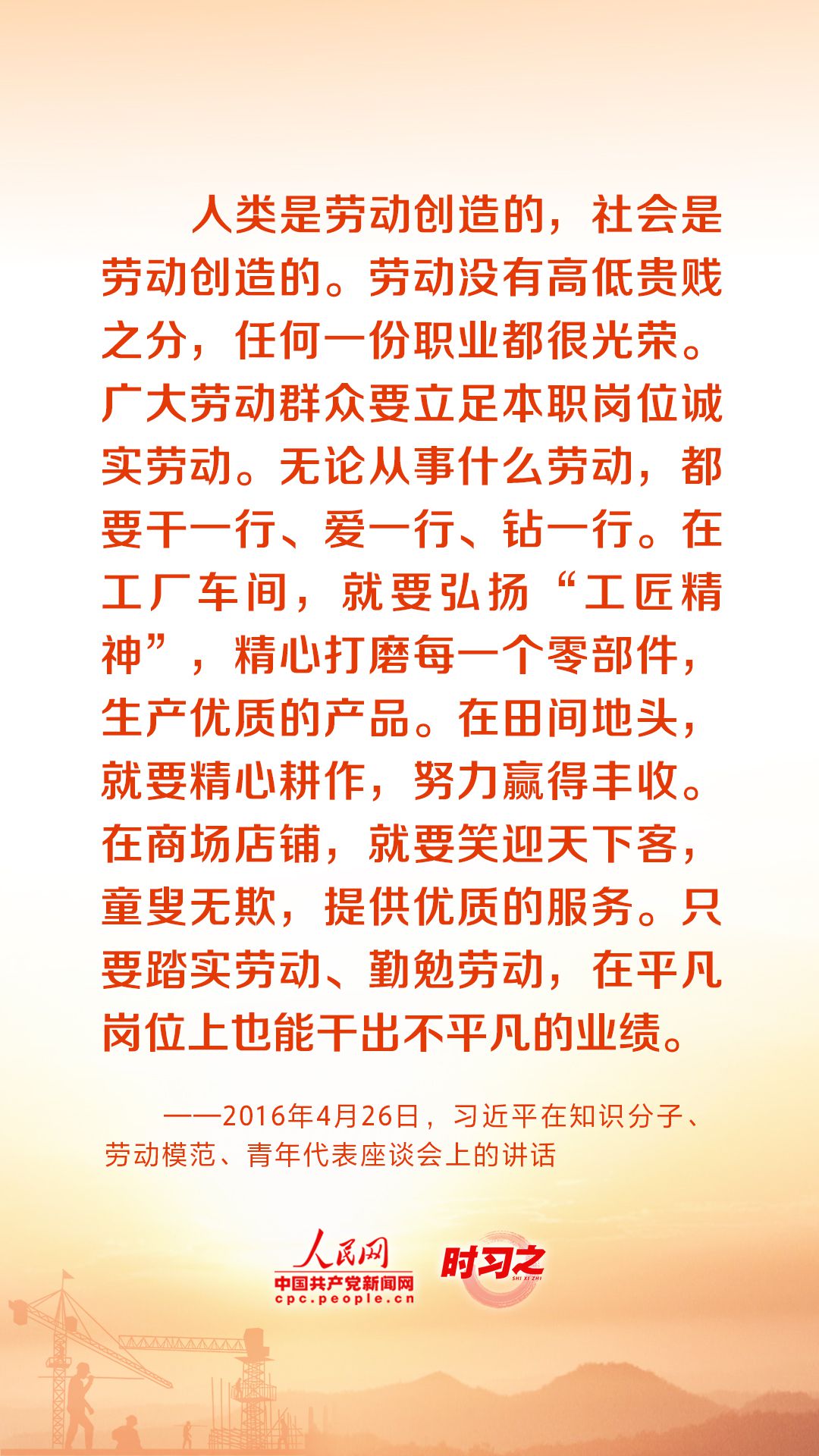 人民创造历史,劳动开创未来。党的十八大以来,习近平总书记始终心系全国广大劳动者,激励广大劳动者在平凡岗位上续写不平凡的故事。在“五一”国际劳动节到来之际,让我们重温总书记的谆谆话语,用辛勤劳动为经济社会发展贡献力量。