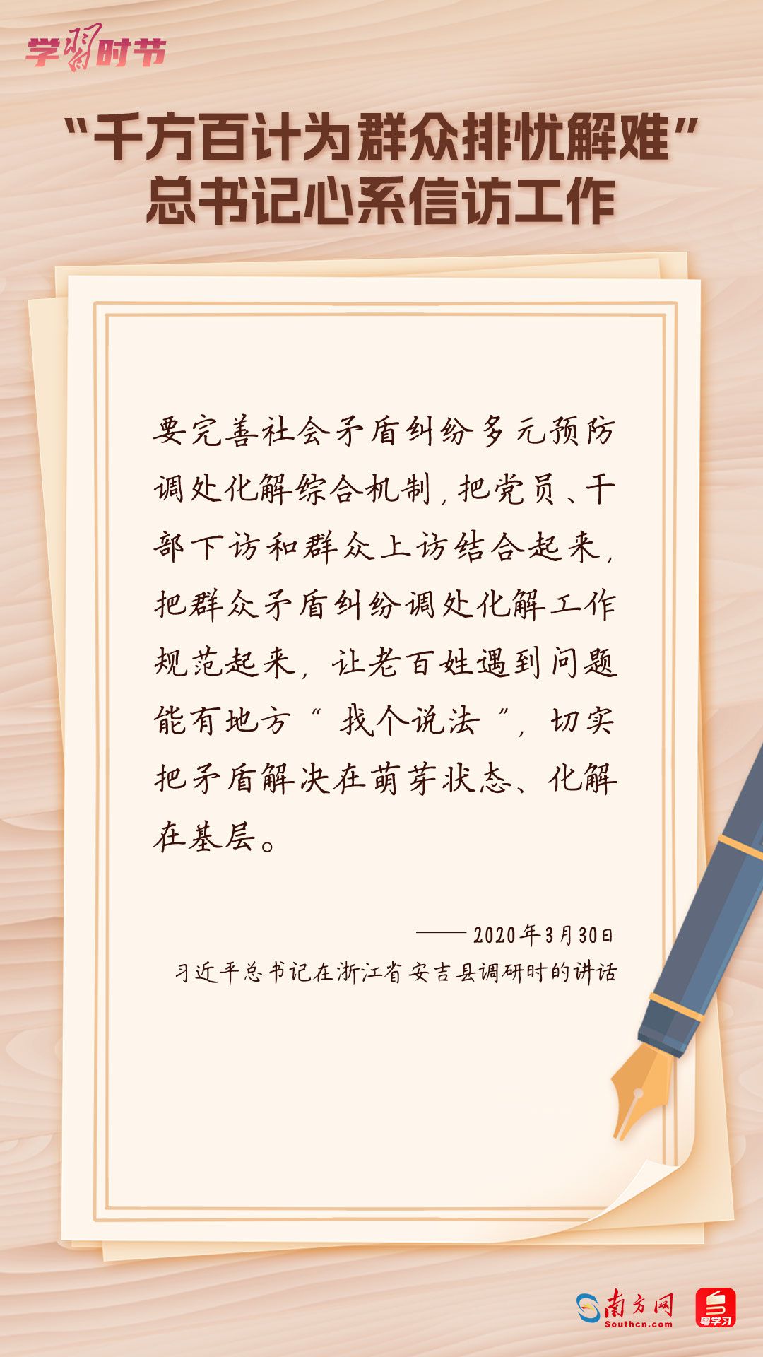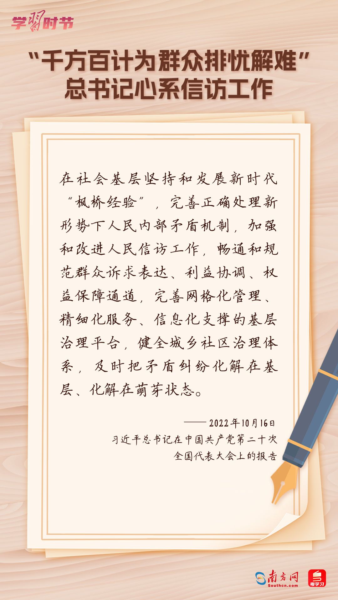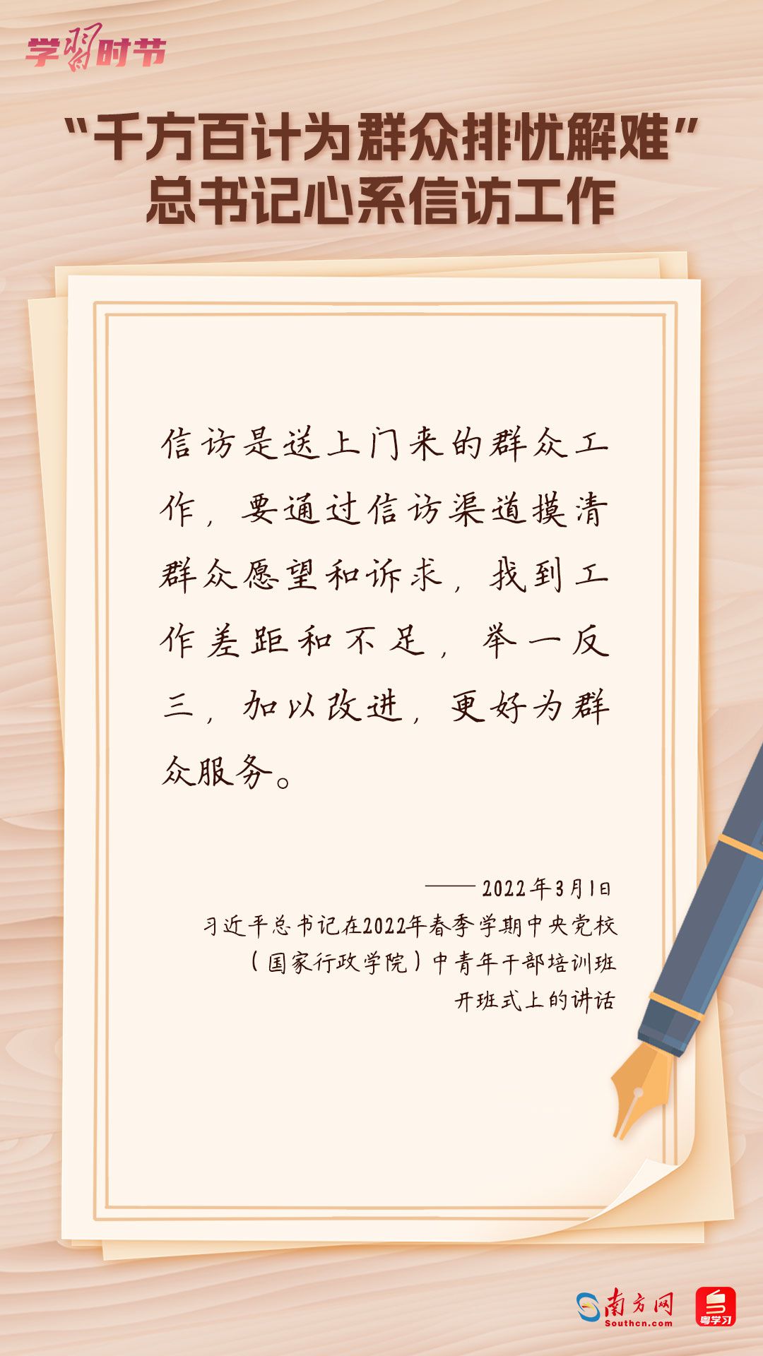 2022年5月1日,中共中央、国务院印发的《信访工作条例》正式实施。《信访工作条例》以习近平新时代中国特色社会主义思想为指导,深入贯彻习近平总书记关于加强和改进人民信访工作的重要思想,总结党长期以来领导和开展信访工作经验特别是党的十八大以来信访工作制度改革成果,坚持和加强党对信访工作的全面领导,理顺信访工作体制机制,是新时代信访工作的基本遵循。今年5月1日是《信访工作条例》实施一周年,“学习时节”整理摘录习近平总书记关于信访工作的重要讲话和重要指示批示,与您一同学习。