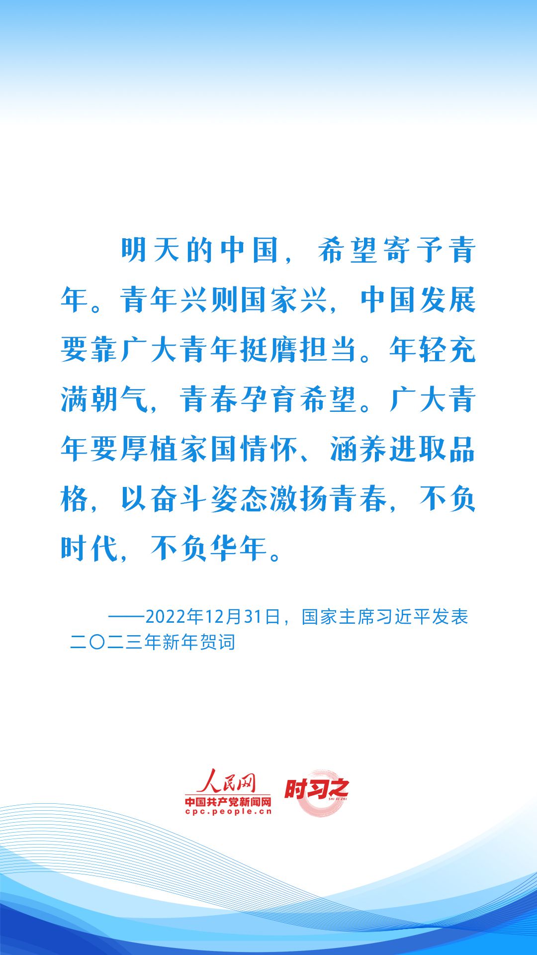 未来属于青年,希望寄予青年。长期以来,习近平总书记始终关心青年成长成才、谋划青年工作发展进步。言之谆谆、期望殷殷,激励着广大青年不负时代、不负韶华,在青春的赛道上奋力奔跑。