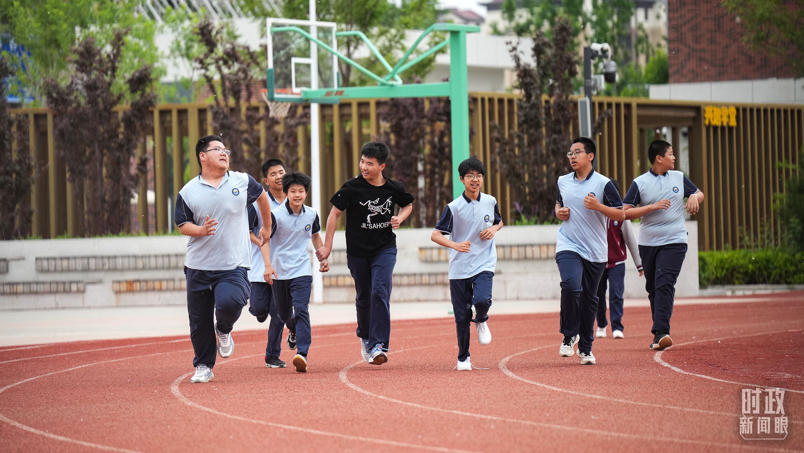 △容东安置区的雄安容和红杰初级中学内,中学生在操场练习长跑。(总台国广记者李晋拍摄)