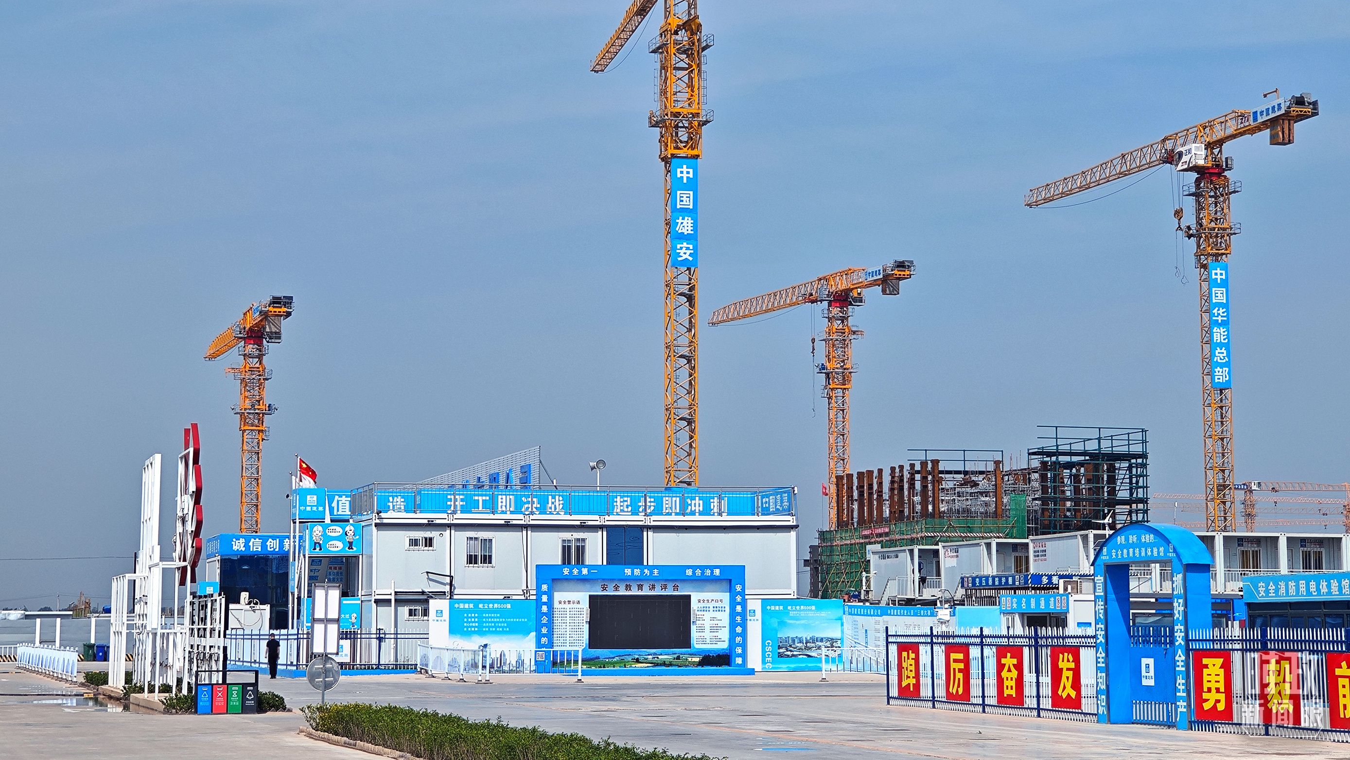 △雄安城际站及国贸中心项目建设现场。(总台央视记者彭汉明拍摄)