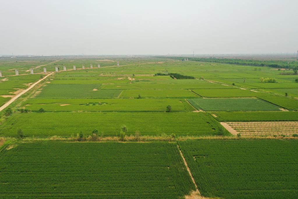 5月11日拍摄的黄骅市旧城镇仙庄片区旱碱地麦田(无人机照片)。新华社记者 牟宇 摄