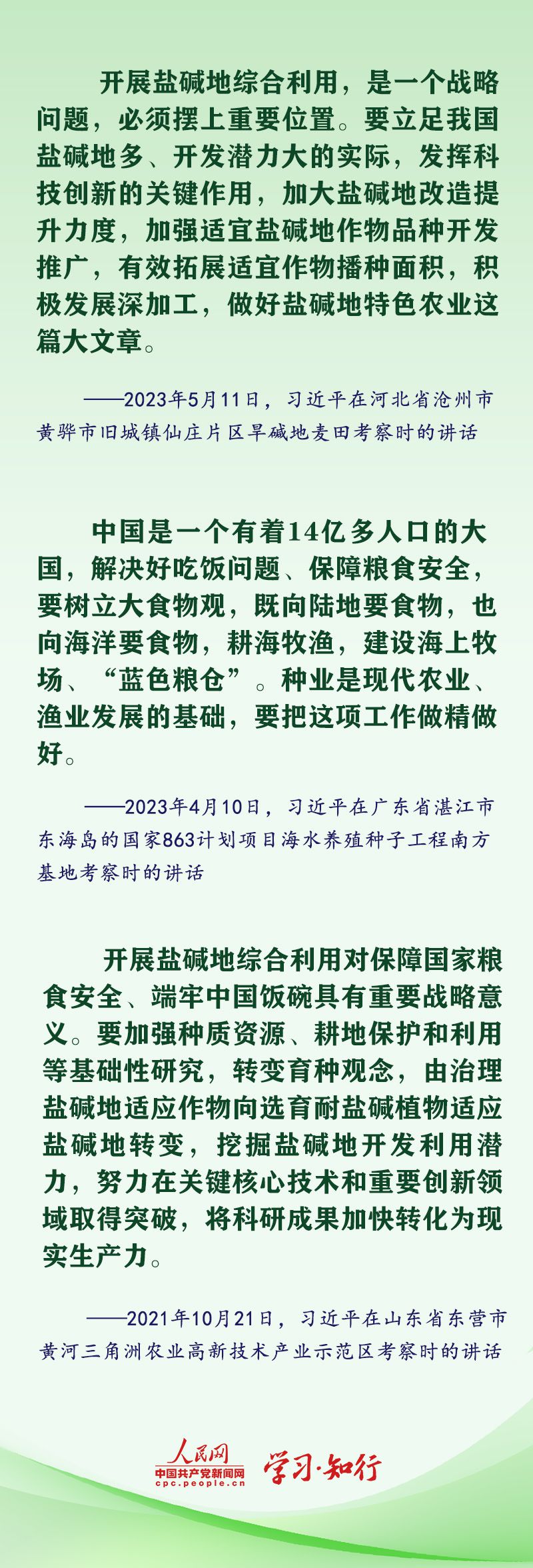 此前,2021年10月,在山东考察时,习近平来到黄河三角洲农业高新技术产业示范区,也曾叮嘱“18亿亩耕地红线要守住,5亿亩盐碱地也要充分开发利用。如果耐盐碱作物发展起来,对保障中国粮仓、中国饭碗将起到重要作用。”