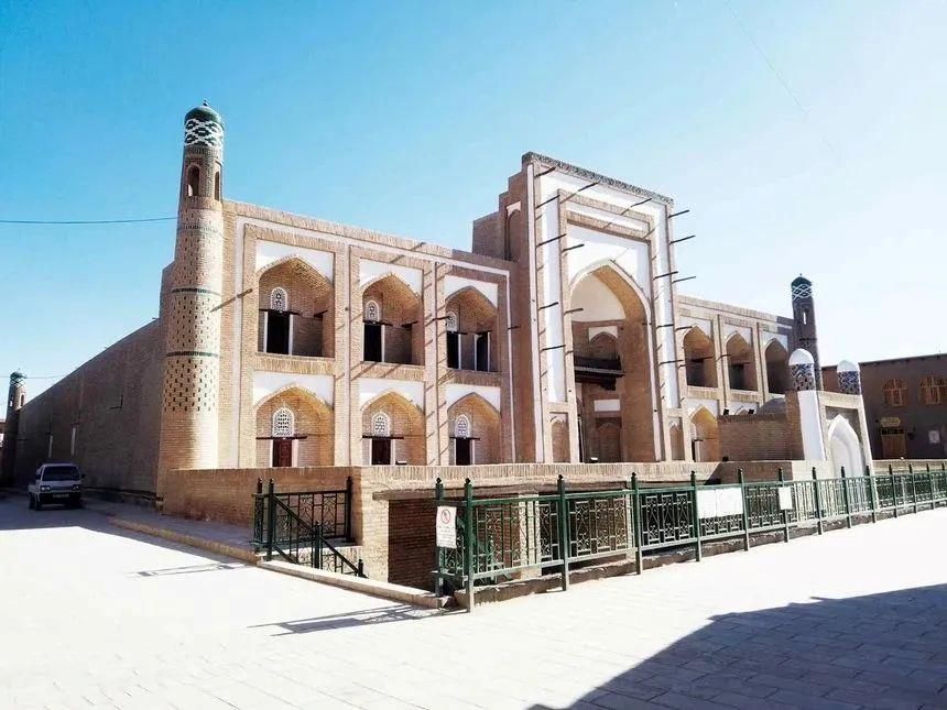 希瓦古城地处乌兹别克斯坦西南部,曾是古丝绸之路上重要的东西方交汇之地。古城保存着数十处重点保护历史文化遗迹,部分已年久失修。中方在修复需求最迫切、难度和技术要求也最高的阿米尔·图拉经学院和哈桑·穆拉德库什别吉清真寺开展保护工作,并对周围环境进行修复整治。