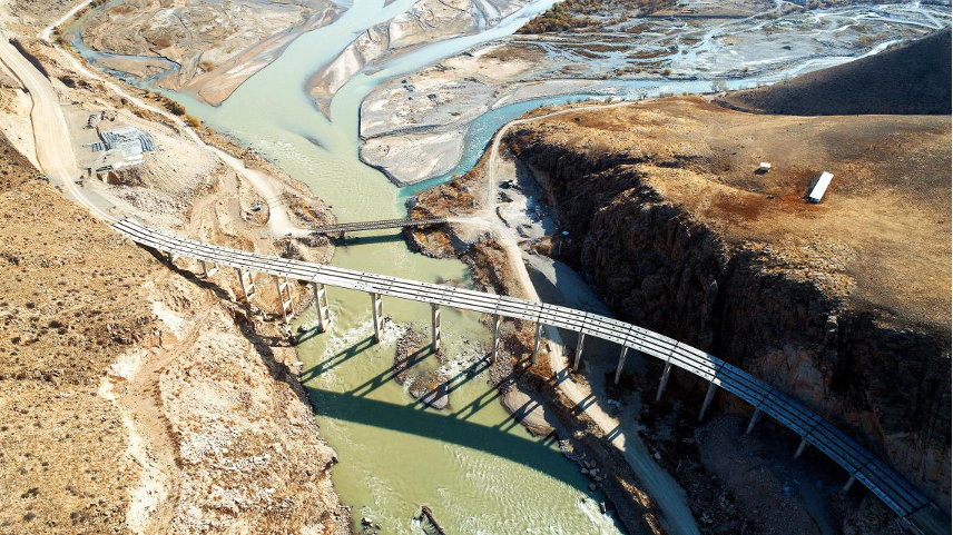 吉尔吉斯斯坦新北南公路二期工程施工现场(2020年10月27日摄)。该项目分三期进行,其中一期、二期工程由中国路桥公司承建,已于2021年竣工。目前,三期工程正在建设中。项目建成后,将成为连接吉南北的交通大动脉,乃至中亚地区重要的国际交通要道。