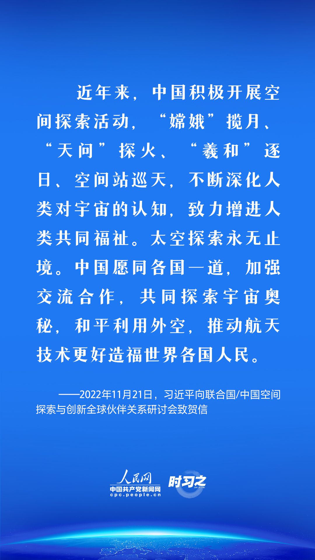 外层空间是人类共同的财富,探索、开发、和平利用外层空间是人类共同的追求。近年来,中国积极开展空间探索活动,不断深化人类对宇宙的认知,致力增进人类共同福祉。习近平高度重视我国航天事业发展,多次作出重要论述和重要指示批示,倡导世界各国一起推动构建人类命运共同体,坚持在平等互利、和平利用、包容发展的基础上,深入开展外空领域国际交流合作。