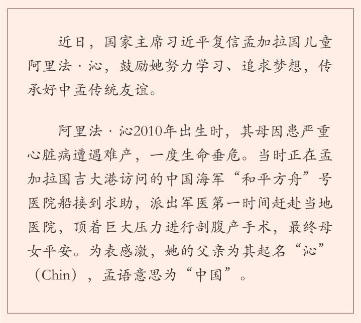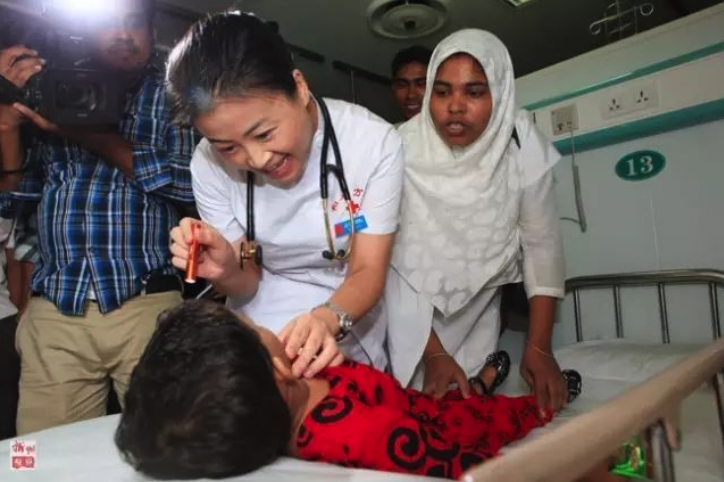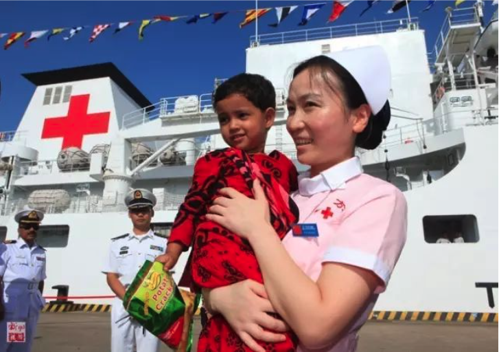 2013年,“和平方舟”号医院船再次来到孟加拉国。上万民众自发涌向中国医院船,最高单日门诊1700余人次。3岁的阿里法·沁健康么?中国军医牵挂着她。她家住在偏僻农村,中国军医设法找到了她,邀请她登上“和平方舟”号医院船体检。