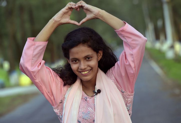 2023年5月26日,沁在孟加拉国做出爱心手势表达对中国的爱意。新华社发