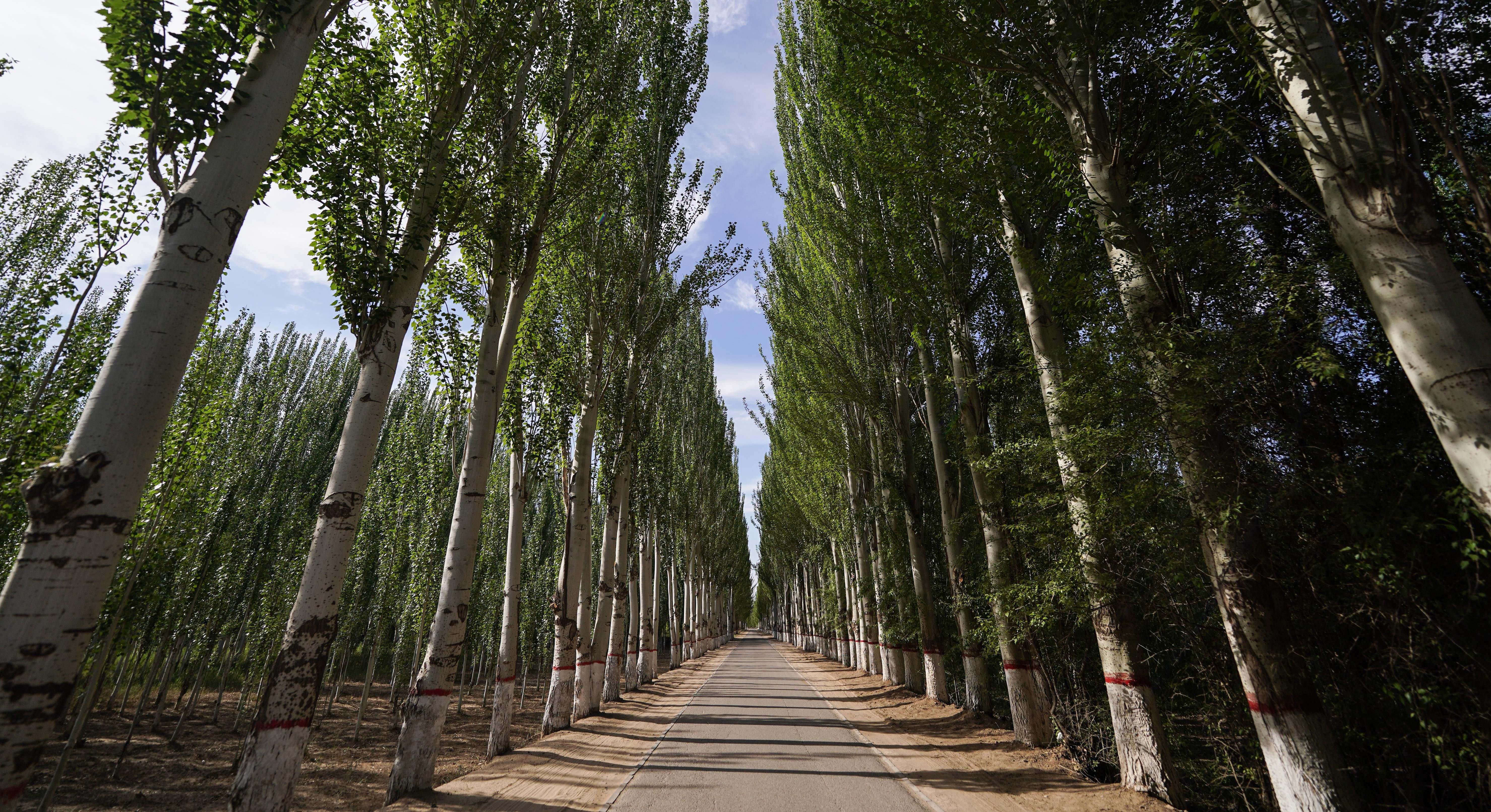 内蒙古巴彦淖尔市临河区国营新华林场的防护林(总台国广记者李晋拍摄)