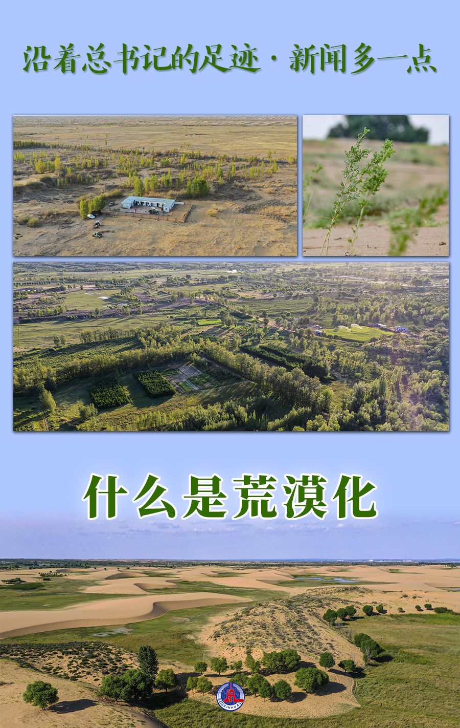 6月6日下午,习近平总书记在内蒙古巴彦淖尔市主持召开加强荒漠化综合防治和推进“三北”等重点生态工程建设座谈会。习近平总书记强调,要勇担使命、不畏艰辛、久久为功,努力创造新时代中国防沙治沙新奇迹,把祖国北疆这道万里绿色屏障构筑得更加牢固,在建设美丽中国上取得更大成就。