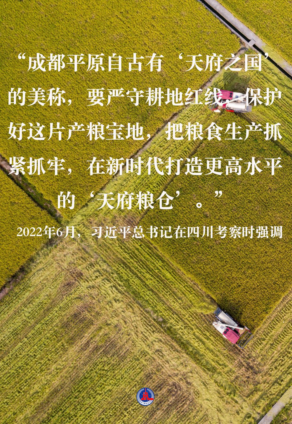 2022年6月,习近平总书记在四川考察时强调,“成都平原自古有‘天府之国’的美称,要严守耕地红线,保护好这片产粮宝地,把粮食生产抓紧抓牢,在新时代打造更高水平的‘天府粮仓’”。