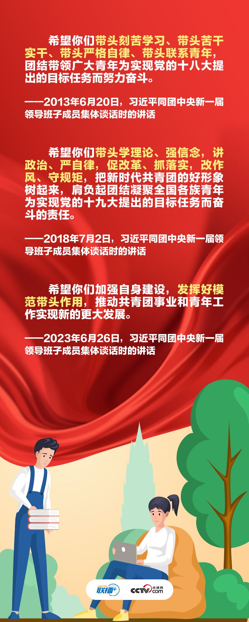 2013年、2018年、2023年,党的十八大以来,总书记同团中央领导班子成员有过三次集体谈话。三次谈话,总书记分别强调了什么?央视网《联播+》特作梳理分析,与您一起学习。