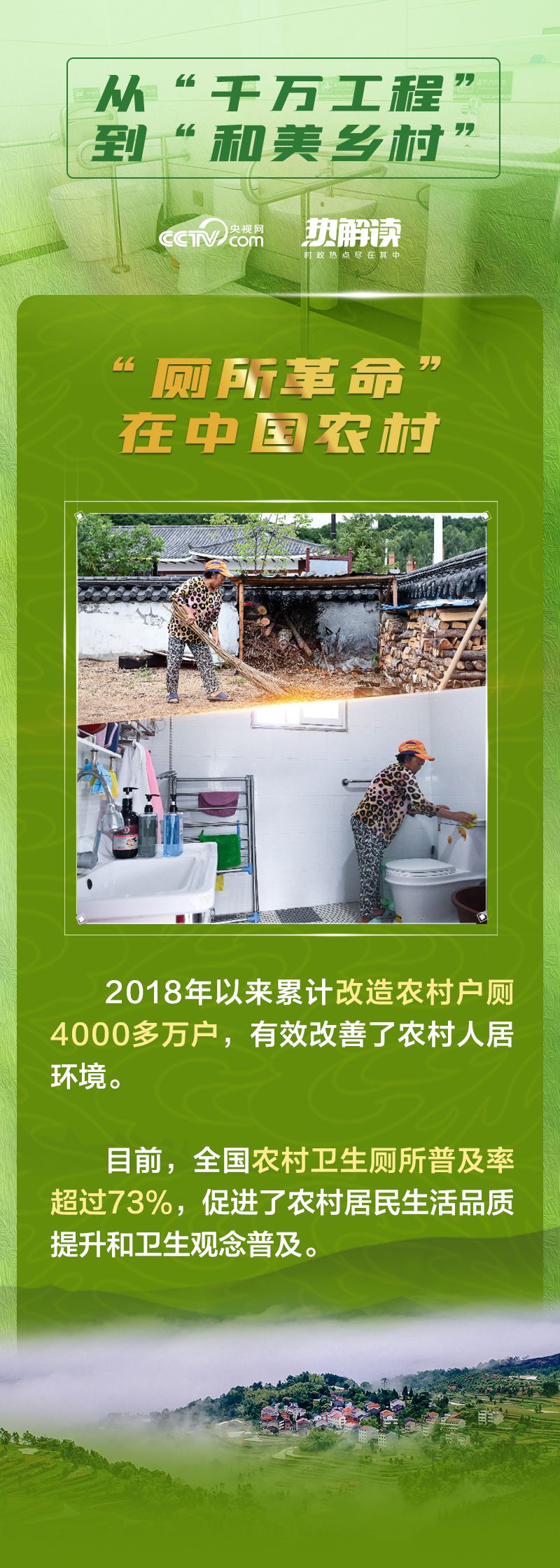 2018年,中办、国办印发《农村人居环境整治三年行动方案》,明确将农村“厕所革命”作为农村人居环境改善的重点。