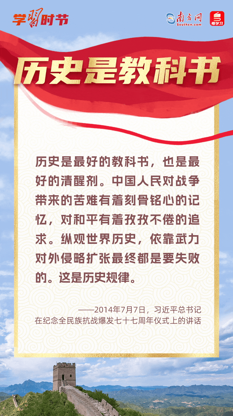 习近平总书记指出,历史是最好的教科书,也是最好的清醒剂。战争的创痛警示我们,吾辈当自强,我们无论身在何处、在何行业,都要以史为鉴,勿忘国耻、砥砺前行。在“七七事变”86周年来临之际,让我们一起重温总书记有关“战争与和平”的重要论述。