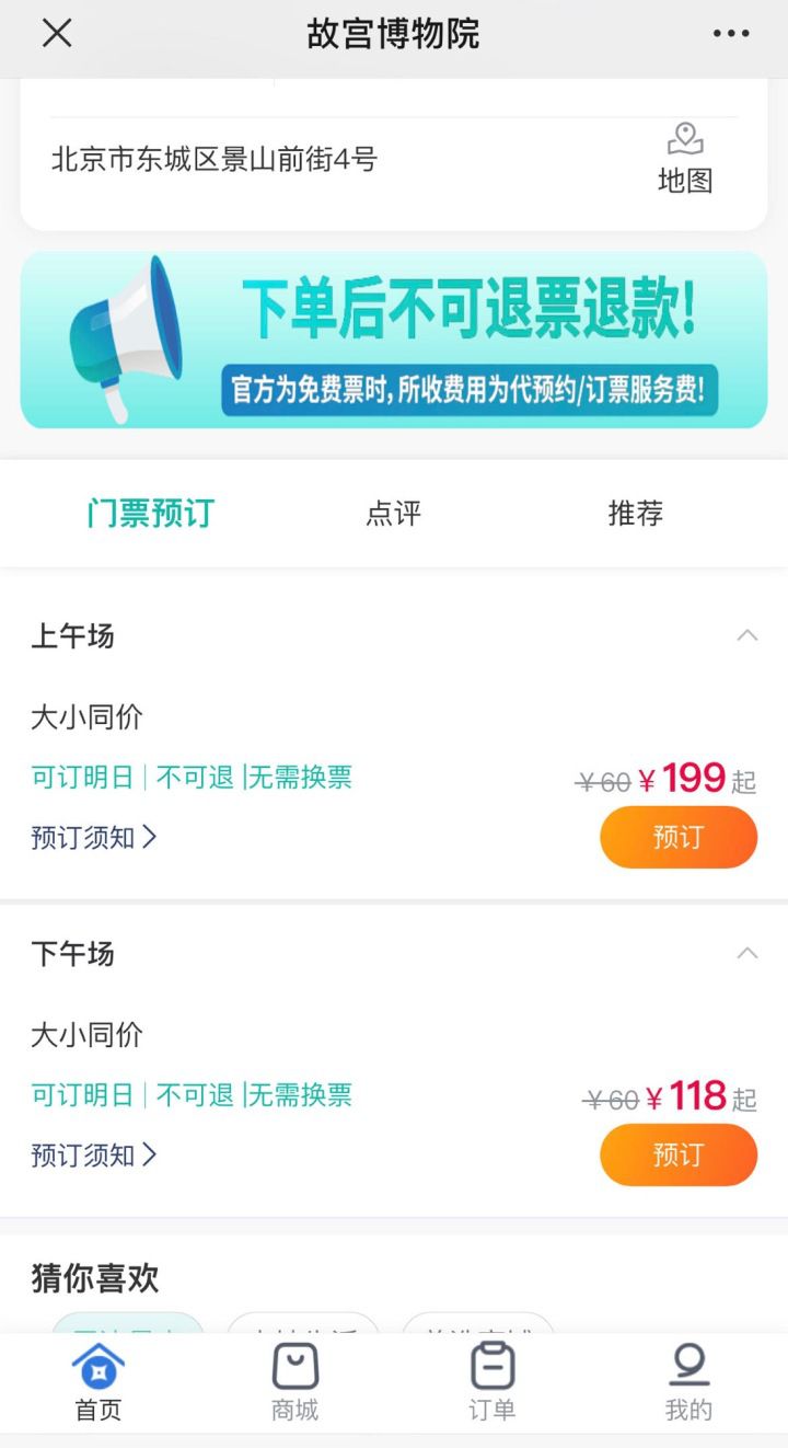 7月9日,某门票代抢小程序上,本来免费的国博门票卖到了139元,官方渠道约满时余票量还有20张左右