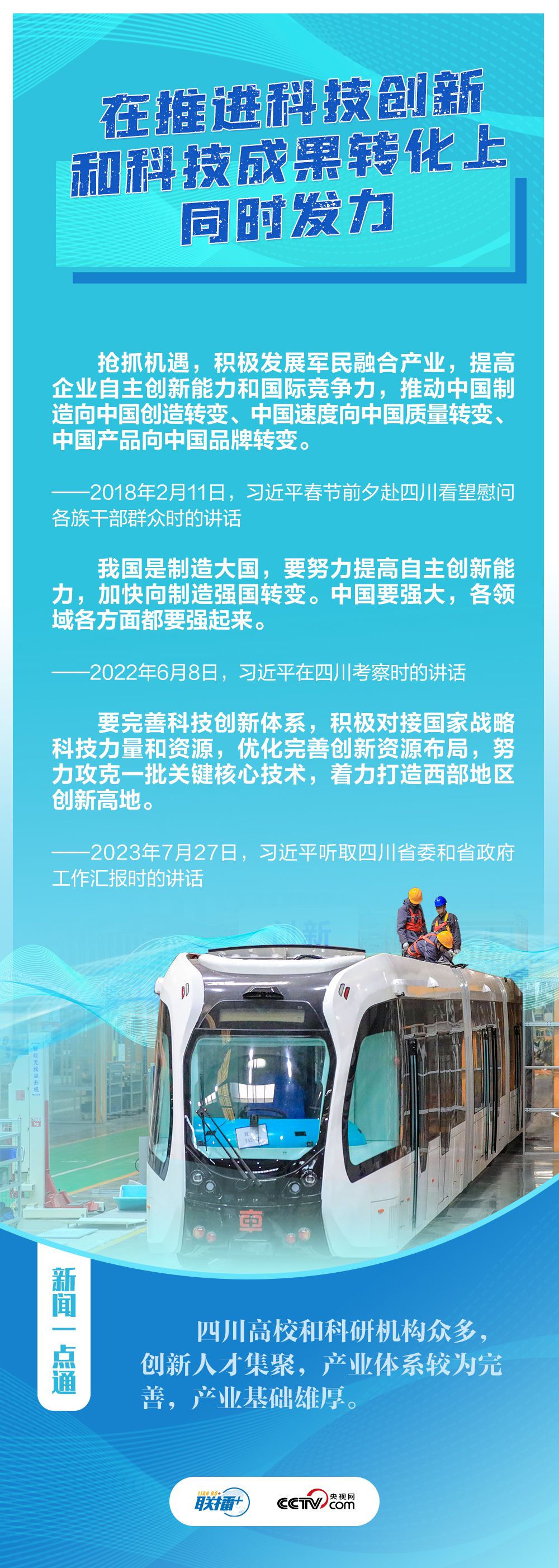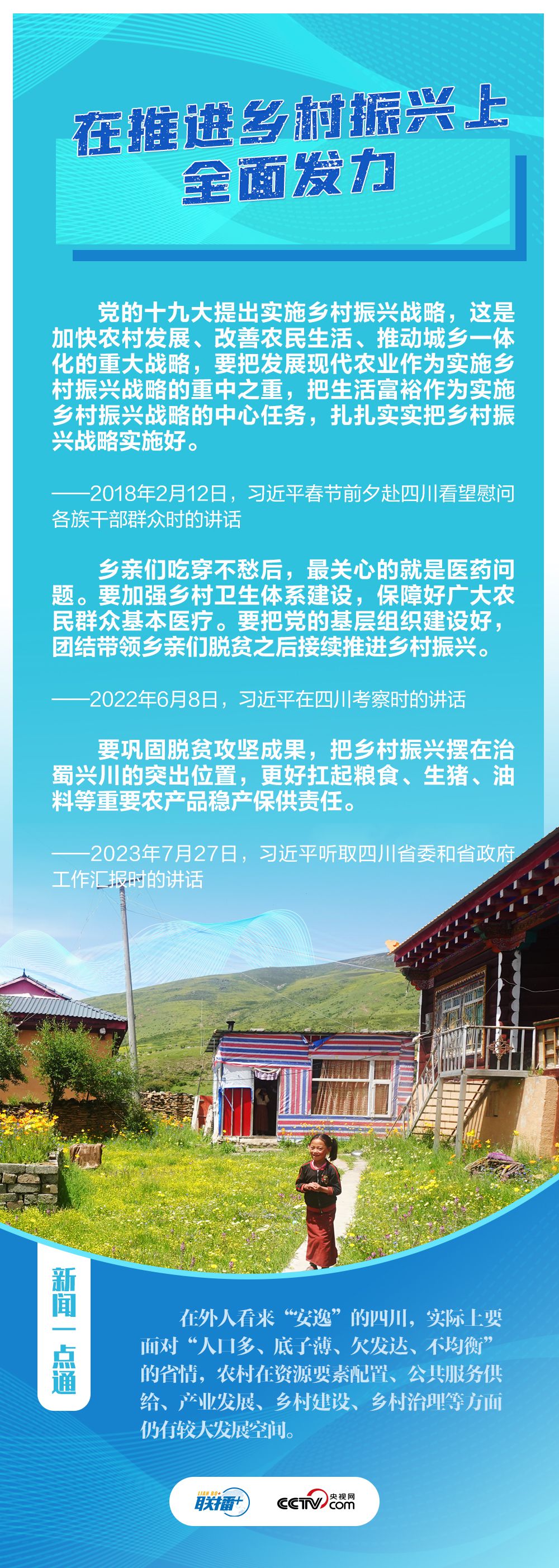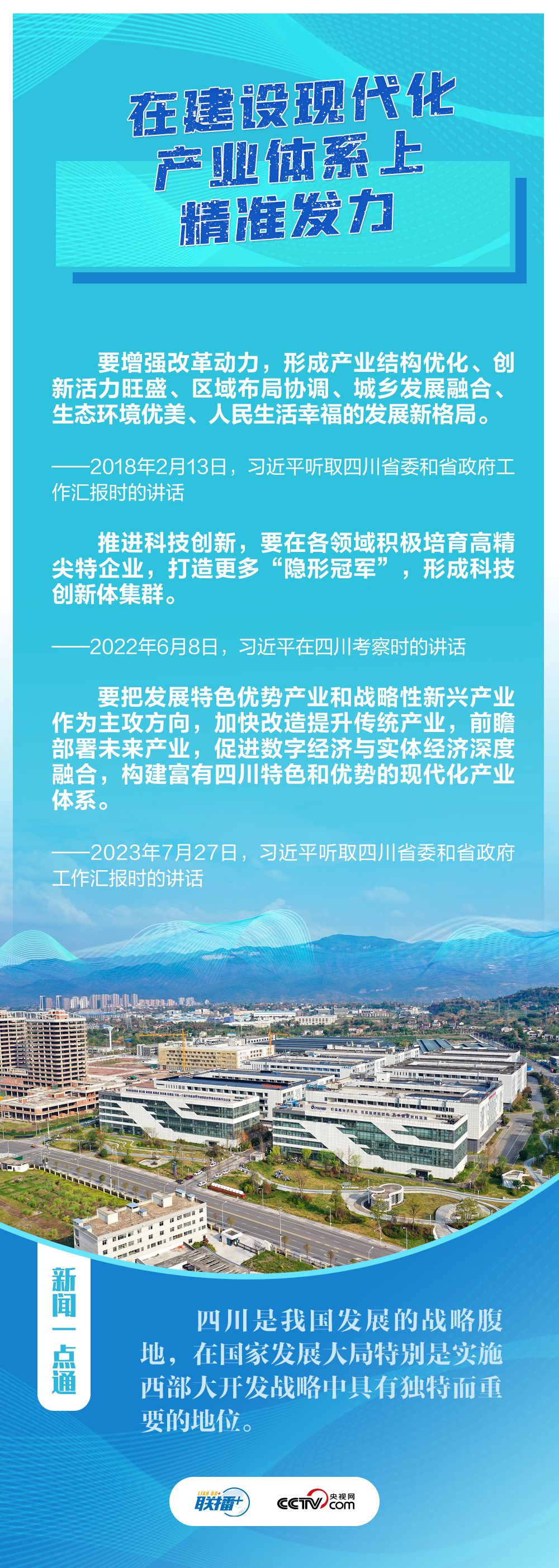 “希望四川在推进科技创新和科技成果转化上同时发力,在建设现代化产业体系上精准发力,在推进乡村振兴上全面发力,在筑牢长江黄河上游生态屏障上持续发力。”7月27日,在巴蜀大地考察的习近平总书记听取四川省委和省政府工作汇报,对四川各项工作提出新寄望。
