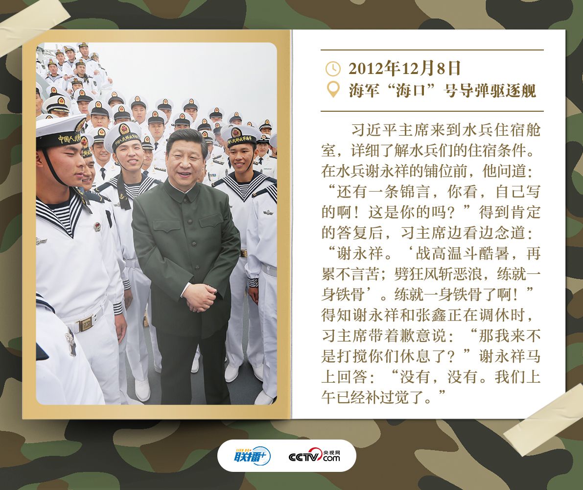 人民军队是国家安全的捍卫者、人民幸福生活的守护者。强军路上,习近平主席心系部队建设,始终把官兵冷暖放在心上。上军舰、走边防、进哨所……习主席的足迹遍布大江南北军营哨卡、海防一线,留下了许多暖心故事。