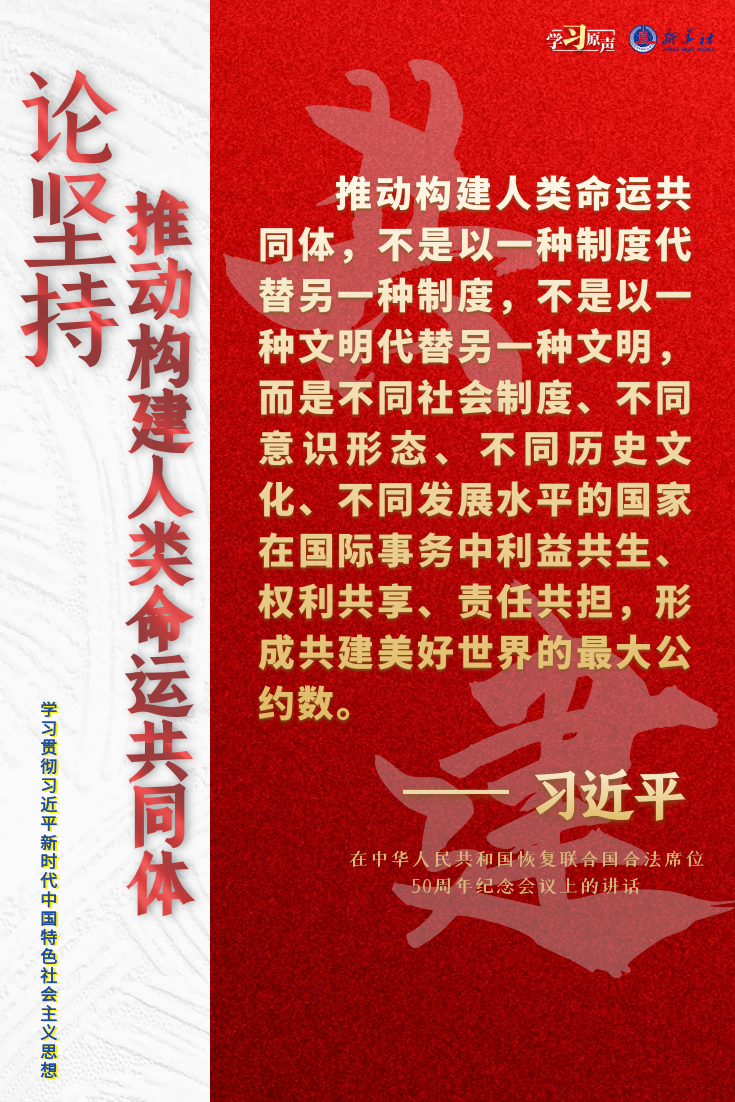习近平总书记强调,我们要与世界各国人民同心协力,构建人类命运共同体,建设持久和平、普遍安全、共同繁荣、开放包容、清洁美丽的世界。